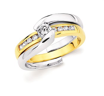 Engagement Ring Modern Bridal: Diamond Ring available for 1/4 Ct. Round Center Stone in 14K Two Tone Gold