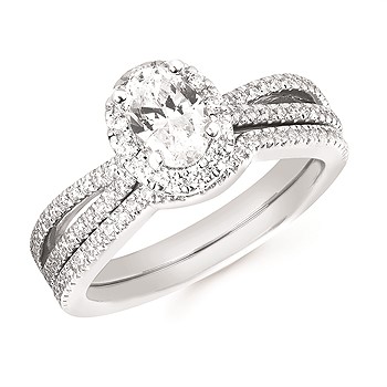 Engagement Ring Halo Bridal: 3/8 Ctw. Diamond Semi Mount shown with 1/2 Ct. Oval Center Diamond in 14K Gold