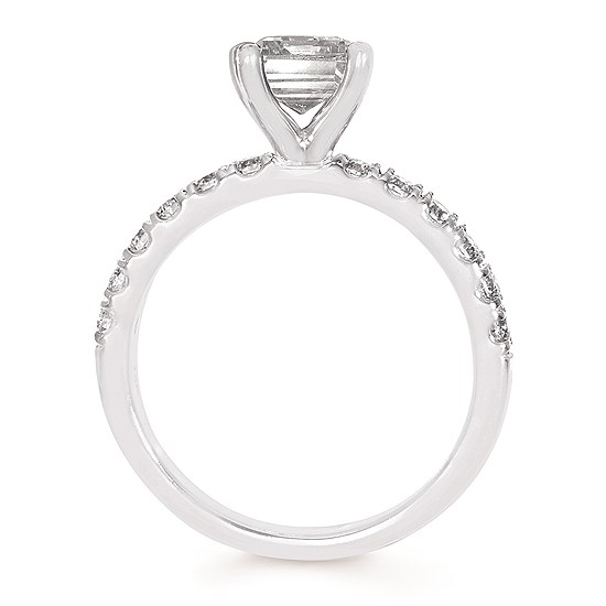 Classic Bridal: 3/8Ctw. Diamond Mounting With 2Ct. Lab Grown Emerald Center Diamond In 14K Gold Classic Bridal